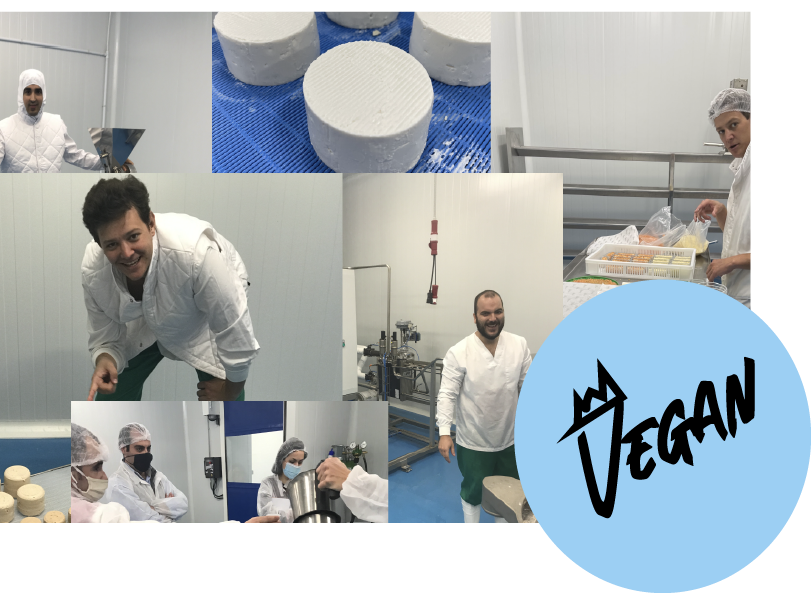 Después de 10 años de duro trabajo, nos hemos hecho especialistas en fermentación de bebidas vegetales,creando una gama alternativa de quesos, yogures y kéfir sin explotación animal. Pura fantasía.